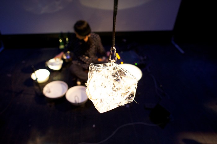 [EN] Lately I’ve been proposing long-duration performances/ installation for a small – medium room, often in unconventional sites (galleries, museums, warehouses… ideally with natural reverbs). The performance takes place in an installation, which can also operate by itself, and lasts for 3 to 6 hours. I weave organic drones with precisely-tuned warm feedback tones waving with water waves, quite delicate to control with natural overtones resonnating according to the room acoustics (my recent fascination is these super feedback tones). Staying inside this sonic phenomenon allows audience to experience its physical sensation. The performance does not have a beginning nor an ending and audience can come and leave as they like. Below is a video of a long-duration performance in an old industrial plant in Mulhouse, France.